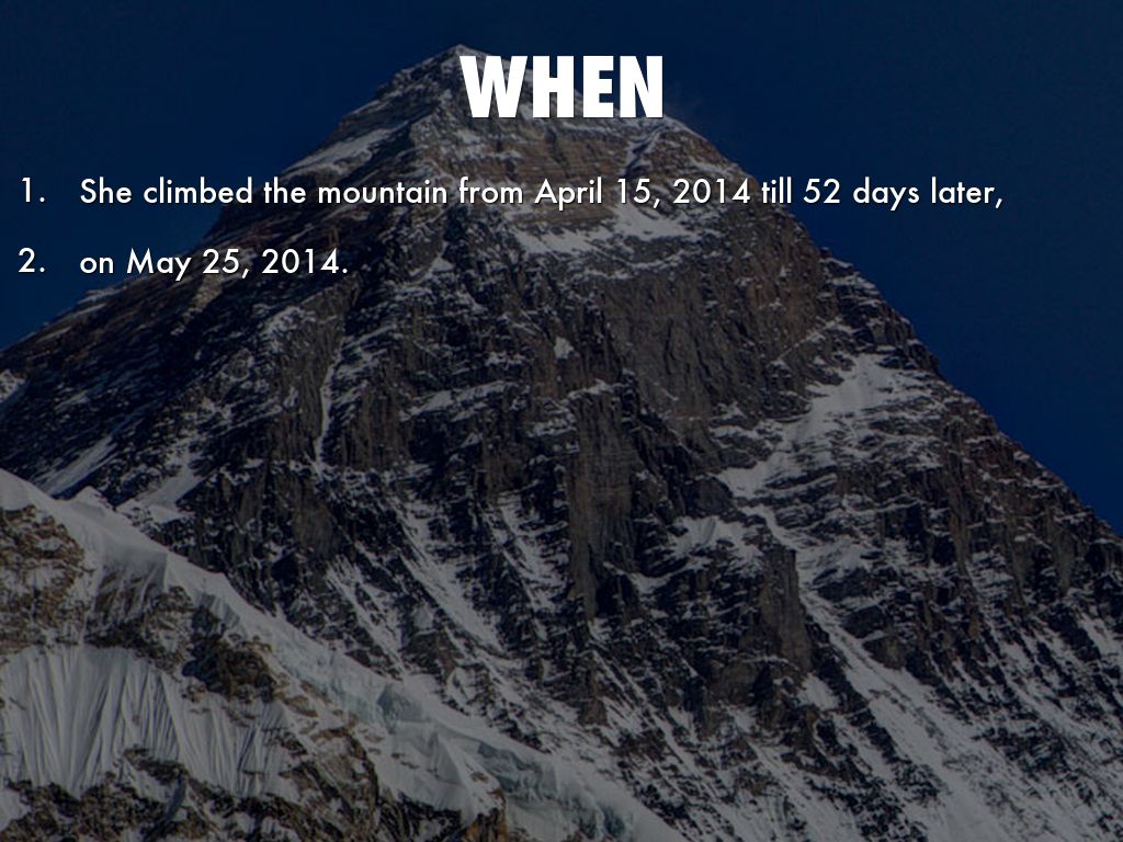 She climbed the mountain from April 15, 2014 till 52 days later,