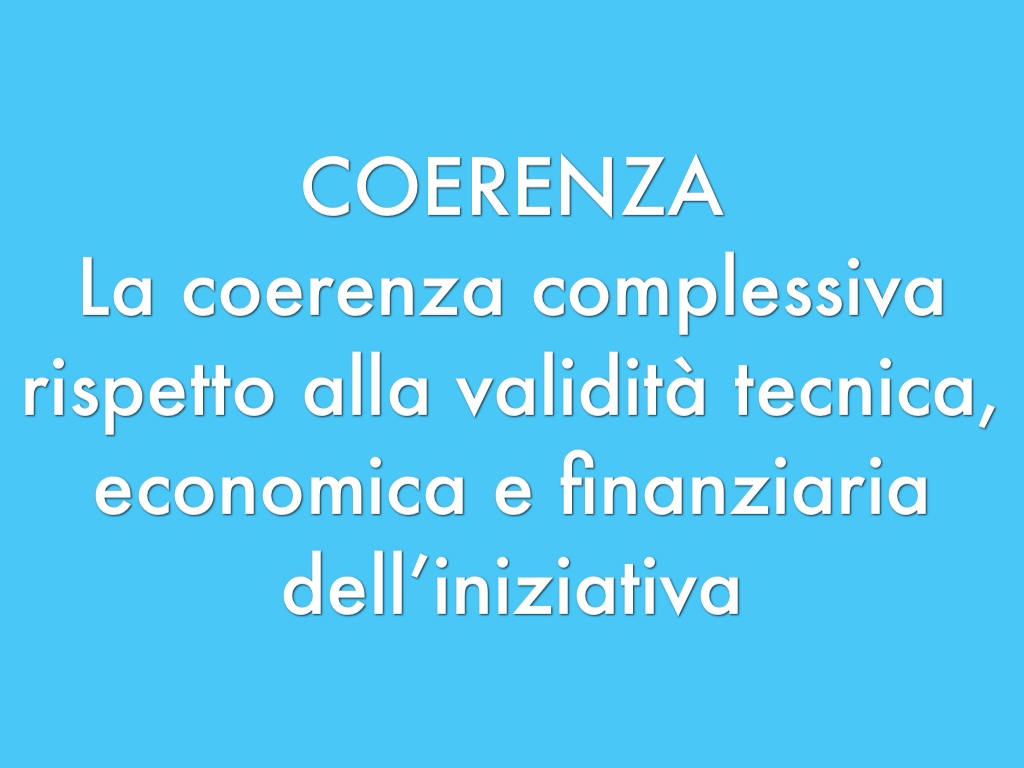 La coerenza complessiva rispetto alla validità tecnica, economica e finanziaria dell’iniziativa
