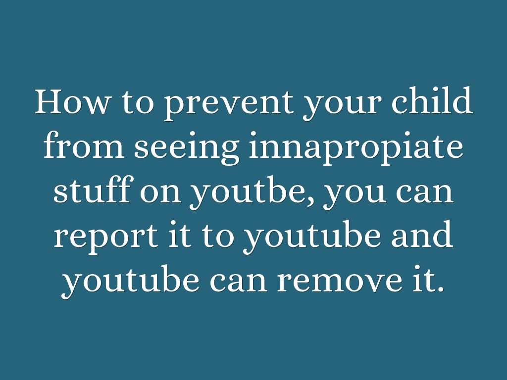 How to prevent your child from seeing innapropiate stuff on youtbe, you can report it to youtube and youtube can remove it.