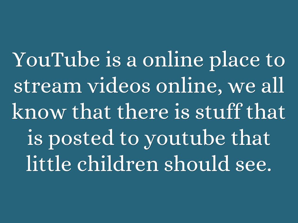 YouTube is a online place to stream videos online, we all know that there is stuff that is posted to youtube that little children should see.