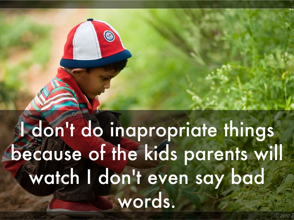 I don't do inapropriate things because of the kids parents will watch I don't even say bad words.