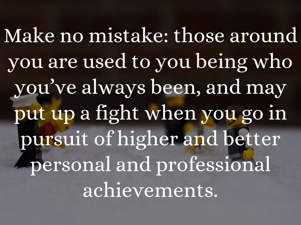 Make no mistake: those around you are used to you being who you’ve always been, and may put up a fight when you go in pursuit of higher and better personal and professional achievements.