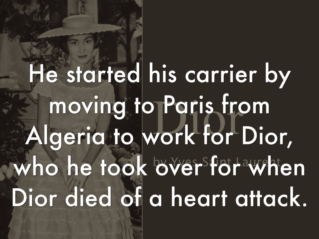 He started his carrier by moving to Paris from Algeria to work for Dior, who he took over for when Dior died of a heart attack.