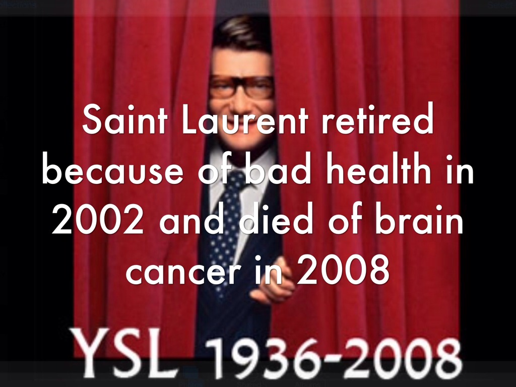 Saint Laurent retired because of bad health in 2002 and died of brain cancer in 2008
