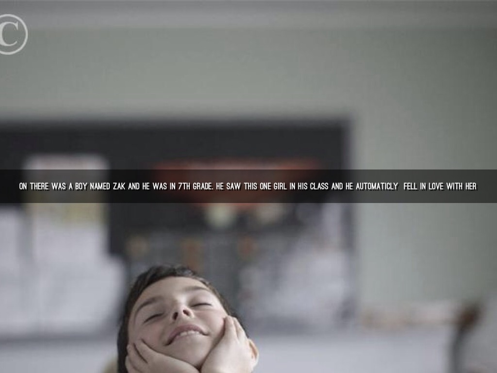 ON THERE WAS A BOY NAMED ZAK AND HE WAS IN 7TH GRADE. HE SAW THIS ONE GIRL IN HIS CLASS AND HE AUTOMATICLY FELL IN LOVE WITH HER