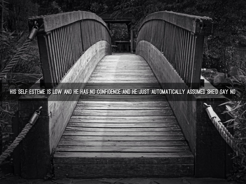 HIS SELF ESTEME IS LOW AND HE HAS NO CONFIDENCE AND HE JUST AUTOMATICALLY ASSUMED SHE'D SAY NO