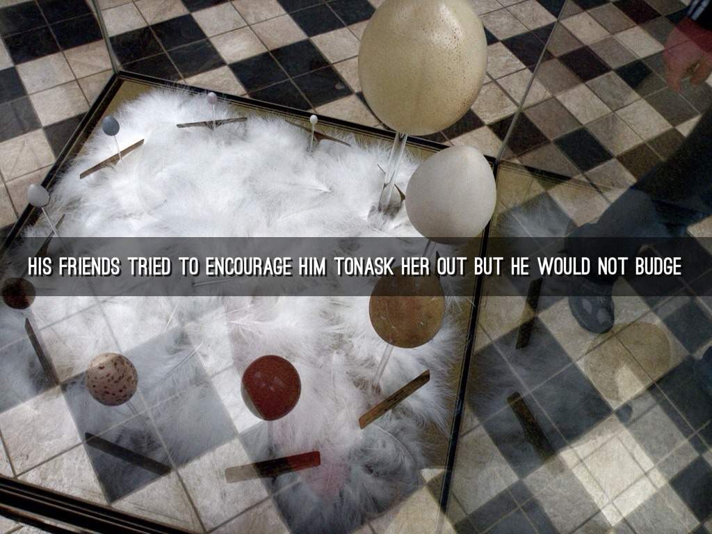 HIS FRIENDS TRIED TO ENCOURAGE HIM TONASK HER OUT BUT HE WOULD NOT BUDGE