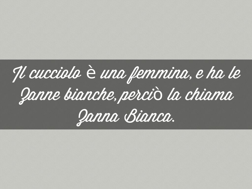 Il cucciolo è una femmina, e ha le Zanne bianche, perciò la chiama Zanna Bianca.