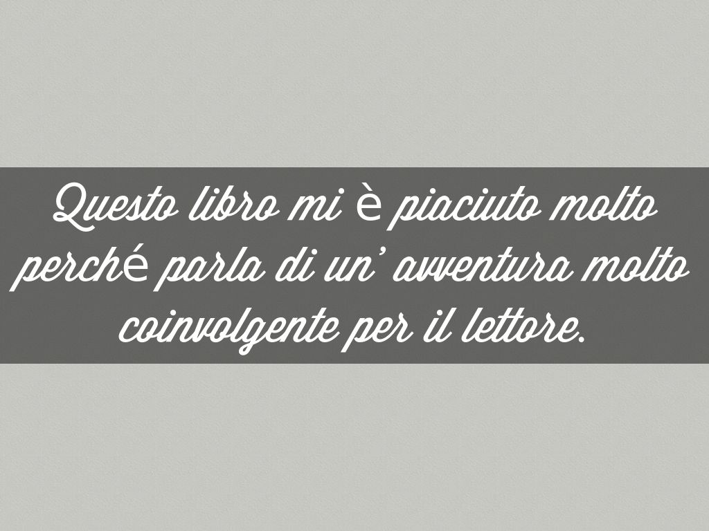 Questo libro mi è piaciuto molto perché parla di un' avventura molto coinvolgente per il lettore.