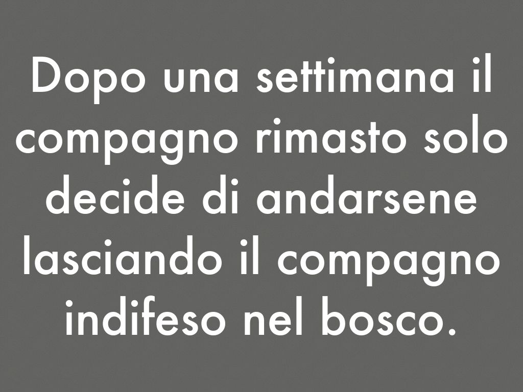 Dopo una settimana il compagno rimasto solo decide di andarsene lasciando il compagno indifeso nel bosco.