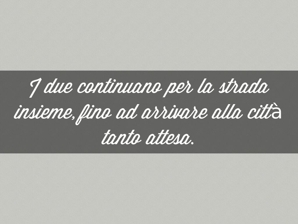 I due continuano per la strada insieme, fino ad arrivare alla città tanto attesa.