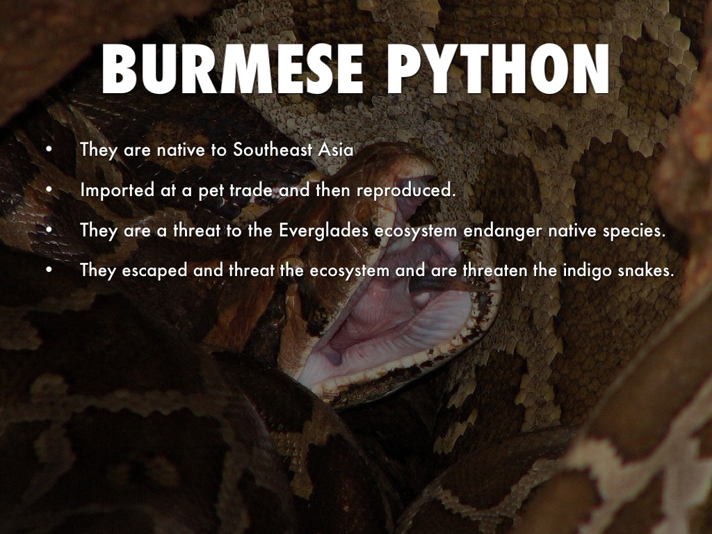 They escaped and threat the ecosystem and are threaten the indigo snakes.
