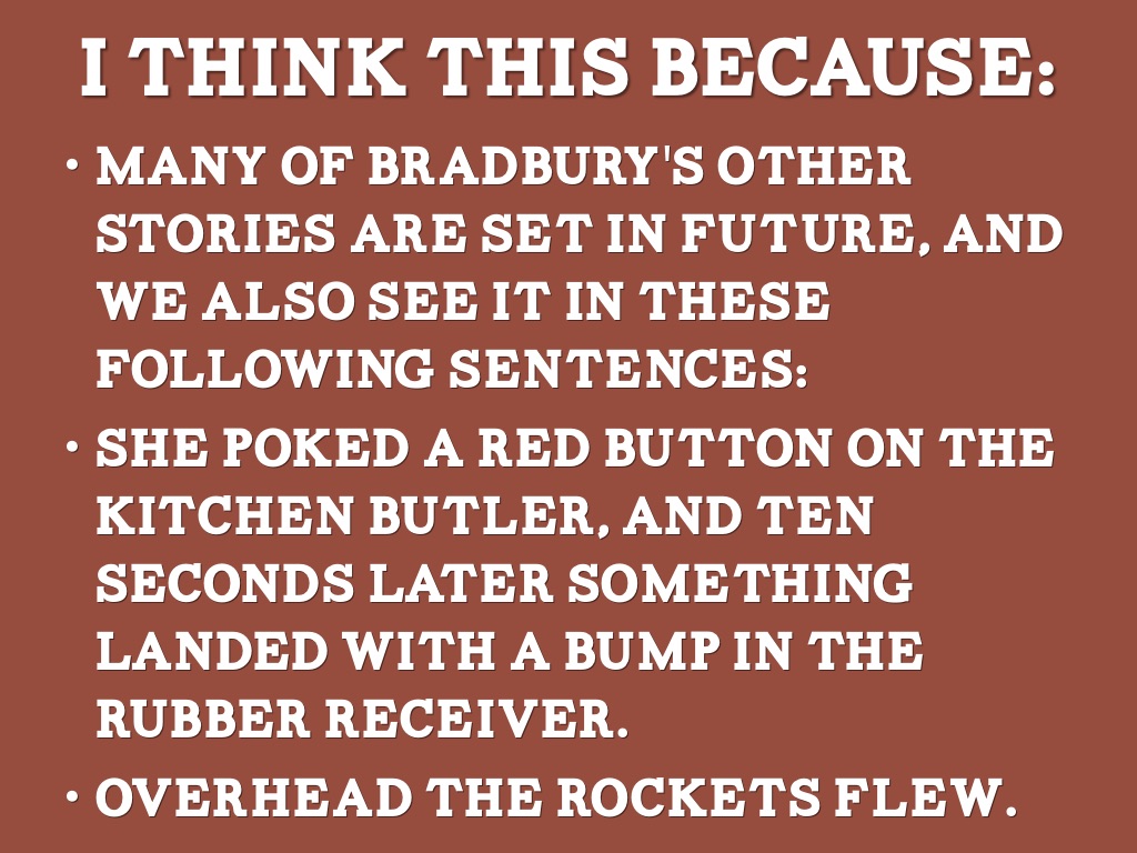 - many of Bradbury's other stories are set in future, and we also see it in these following sentences: