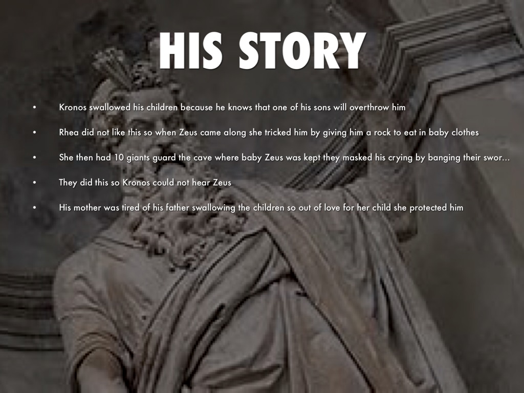 Rhea did not like this so when Zeus came along she tricked him by giving him a rock to eat in baby clothes