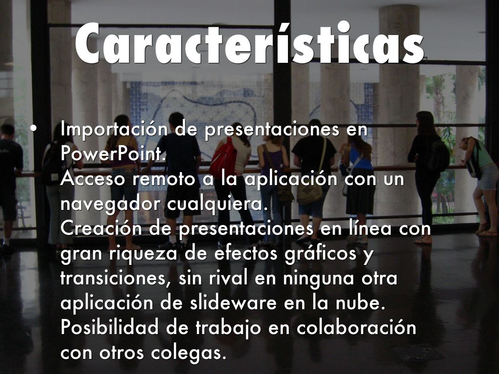 Creación de presentaciones en línea con gran riqueza de efectos gráficos y transiciones, sin rival en ninguna otra aplicación de slideware en la nube.