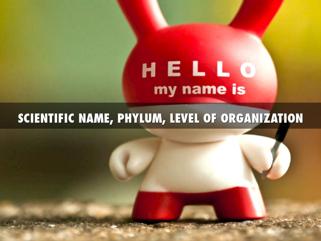 SCIENTIFIC NAME, PHYLUM, LEVEL OF ORGANIZATION