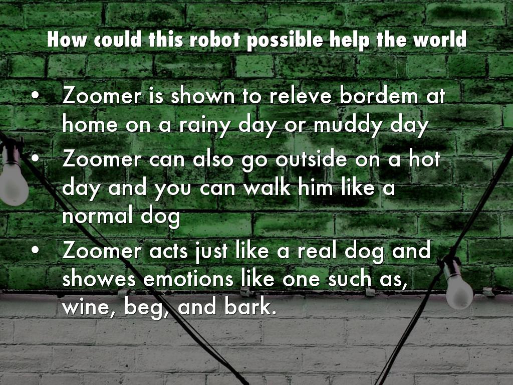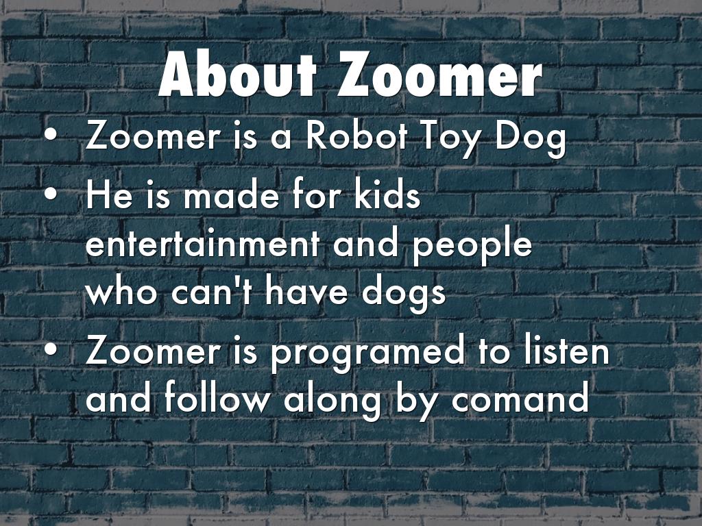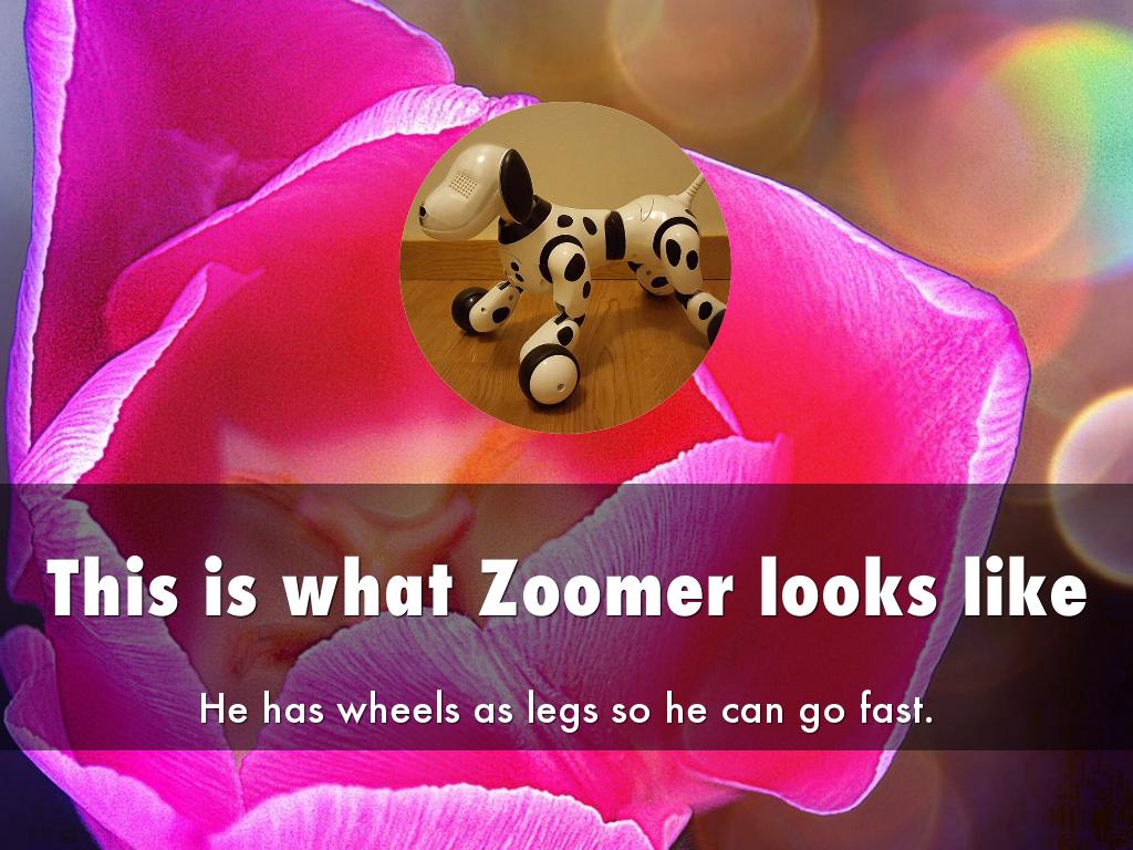 • One reason you should buy Zoomer is because he can move faster than any other robot dog, (because his legs are wheels)
