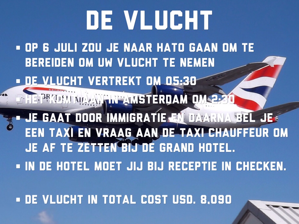 • Op 6 juli zou je naar Hato gaan om te bereiden om uw vlucht te nemen