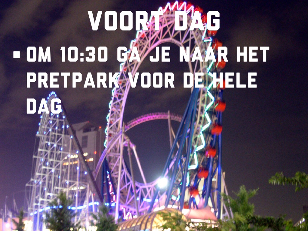 • om 10:30 ga je naar het pretpark voor de hele dag