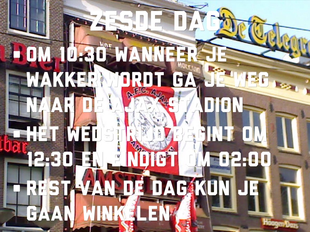 • om 10:30 wanneer je wakker wordt ga je weg naar de ajax stadion
